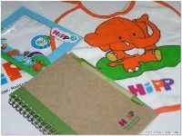 Компания Hipp в концепцию подарков вложила слоган: «Найкраще від природи. Найкраще для природи». Тем самым подчеркивая натуральность своей продукции и социальную ответственность бизнеса. В качестве сувениров вручаются бумажные(!) шариковые ручки и блокноты из повторно переработанного сырья. Ручки, кстати, очень приятные на ощупь! Подарок дополнен рамкой-магнитом для фото ребенка и слюнявчиком с ярким логотипом компании. Главный недостаток подарка, он же плавно переходит в достоинство – у одариваемого должны быть дети.