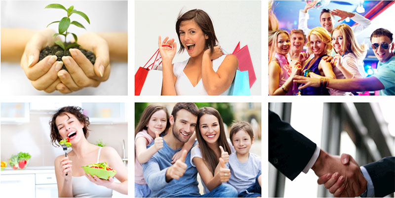 счастливую семью, бизнес-встречу, вечеринку, девушку-шопоголика и сюжет с