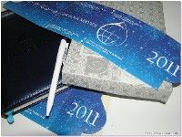 Даже в таком, классическом наборе компания «IDS Аква Сервис» сумела внести оригинальность: открытка нестандартной формы, ежедневник – в стильной брендированой коробке. Это - классический вариант «угодить максимальному количеству одариваемых».