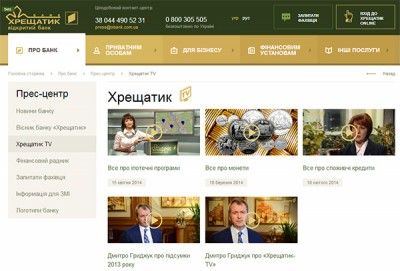 изображение всех пяти разделов сайта". http://www.xcitybank.com.ua/khreshchatik-tv/