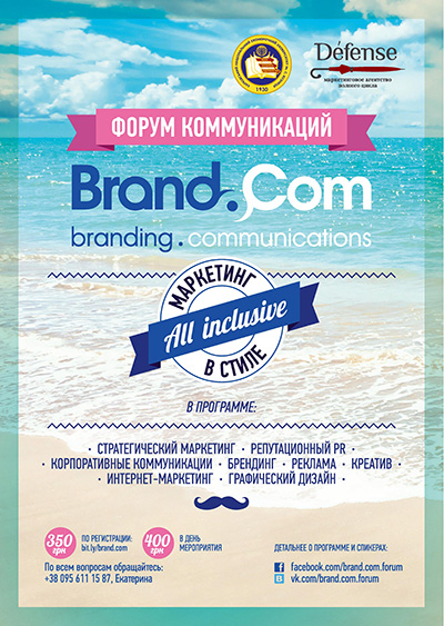 «Brand&Com» – это крупнейшая образовательная площадка для студентов и специалистов в области PR, маркетинга и рекламы. В этом году было принято решение провести мероприятие в формате «Все включено», то есть охватить весь комплекс коммуникаций – от стратегического маркетинга и репутационного PR до рекламного дизайна.