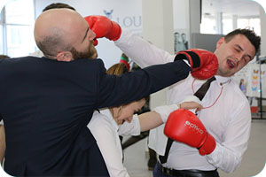 Организаторы в концепцию оформления мероприятия внесли атрибутику бокса. Вопросы из зала иногда отправляли спикеров в нокаут, да и сам накал страстей напоминает боксерский поединок.